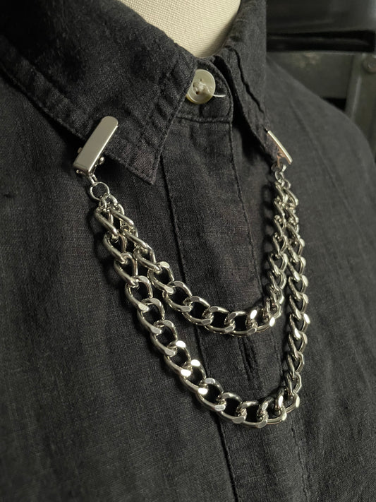 Dual chain silver tone collar clip