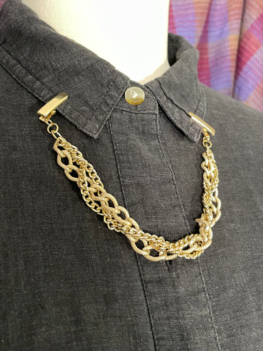 Braided Tri-chain gold tone collar clip