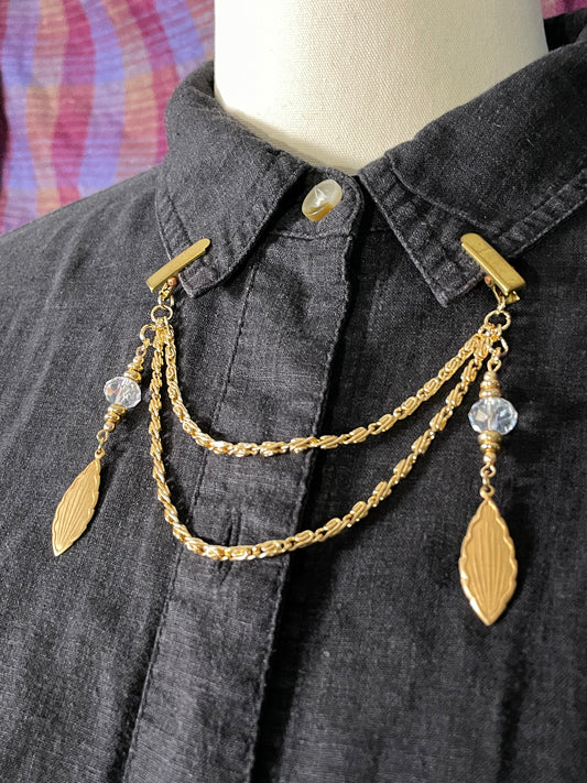 Tri-chain gold tone collar clip